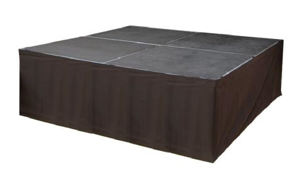 En coton gratté noir ignifugé pour utilisation en intérieur sec uniquement. (Pour l’extérieur ou en milieu humide, utilisez nos jupes de scène en bâche noire.)