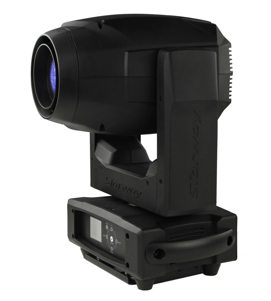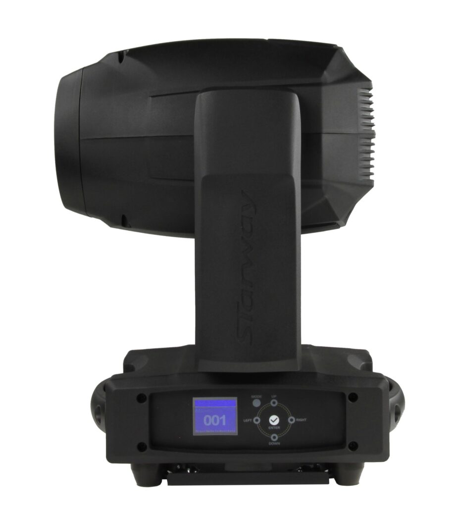 Ses 2 roues de gobos avec l’ajout du prisme et de la rotation créent des motifs géométriques et la roue de couleur ajoute la touche colorée.
