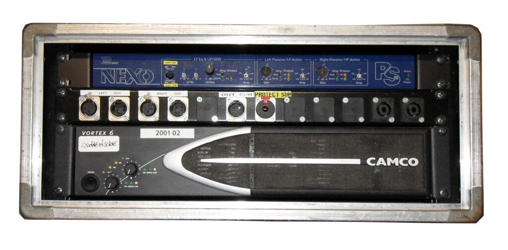– 1 ampli CROWN 3600 VZ ou CAMCO Vortex 6 + processeur PS 25 TD + 2 câbles XLR/XLR 5m