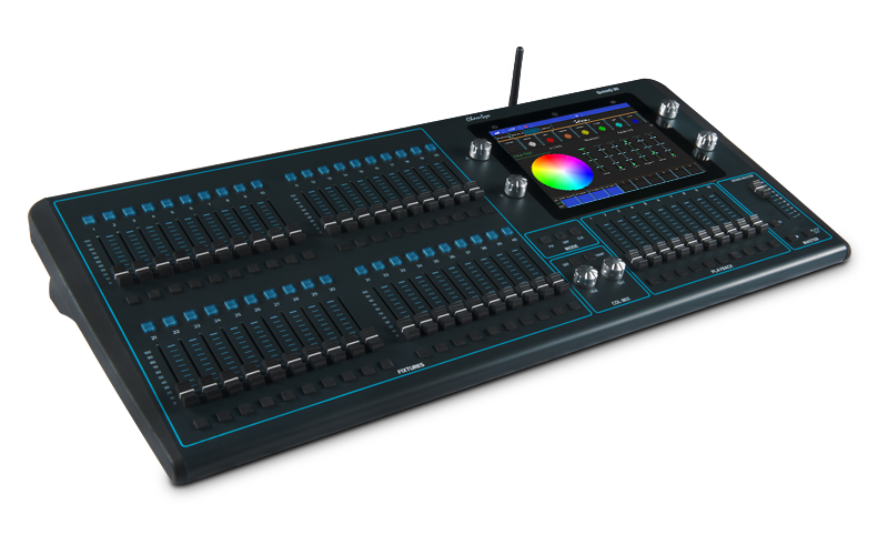 – 40 faders dédiés au contrôle de l’intensité des projecteurs, fonctionnant par projecteur, par groupe de projecteurs ou par mémoire.