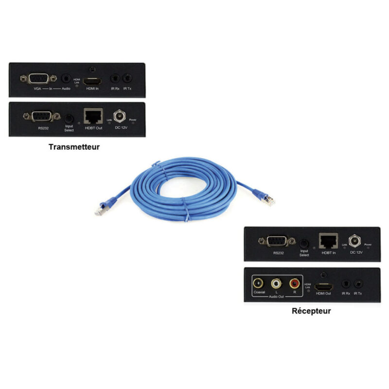 Kit permettant de transmettre un signal VGA ou HDMI sur une grande longueur (jusqu’à 100m)